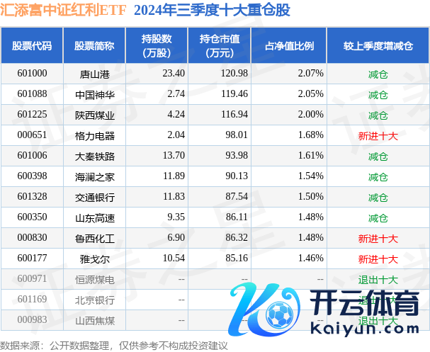 汇添富中证红利ETF为指数型-股票基金,字据最新一期基金季报披露,该基金钞票设置:股票占净值比99.46%,无债券类钞票,现款占净值比0.8%。基金十大重仓股如下:
