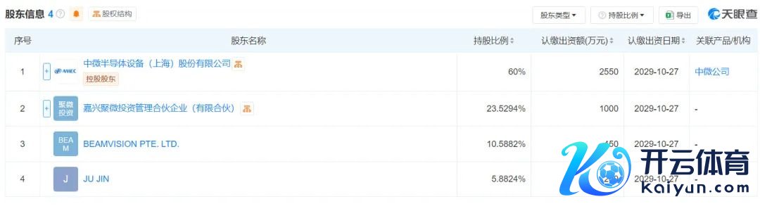天眼查显露,超微半导体开拓(上海)有限公司注册成立于2024年11月22日,法定代表东谈主为尹志尧,其控股推动为中微半导体开拓(上海)股份有限公司(抓股60%)。